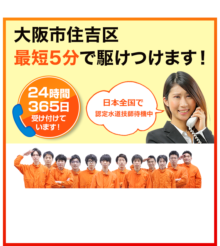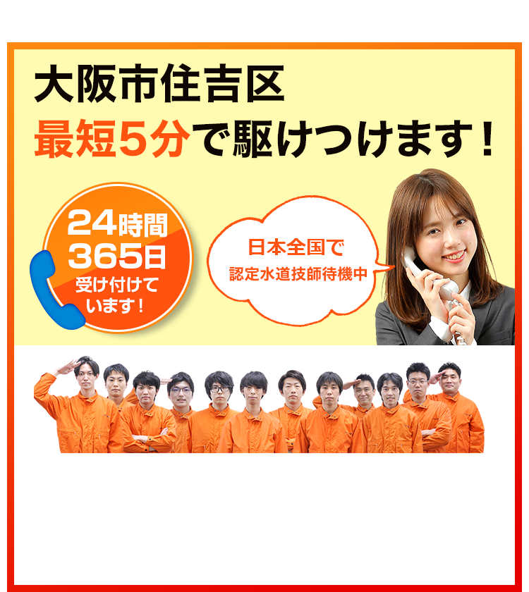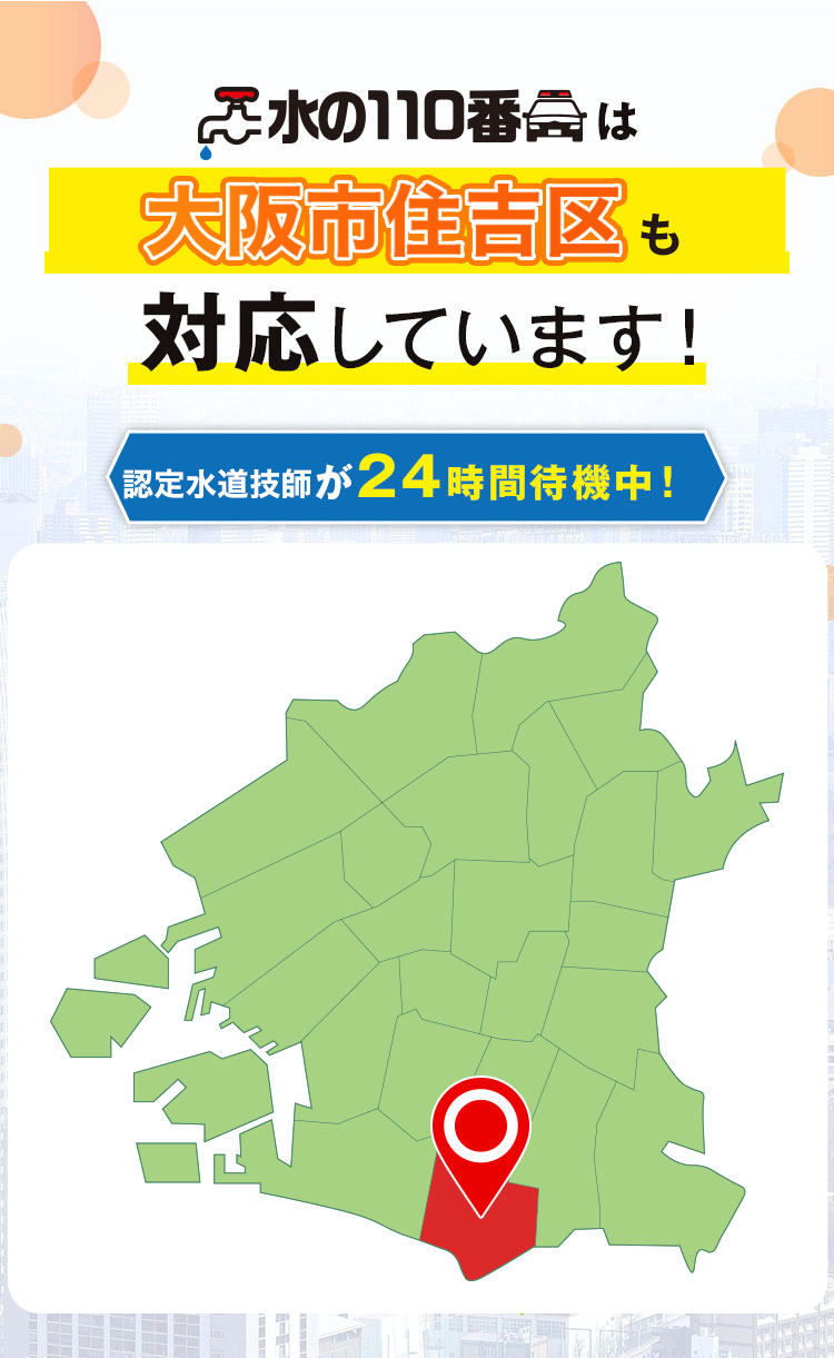 住吉区でトイレつまりや水漏れ、住吉大社から我孫子道まで、迅速な対応を最短5分で実現します。365日対応、どの地域でも、水回りのトラブルを速やかに解決へ導く迅速サービスを提供します。